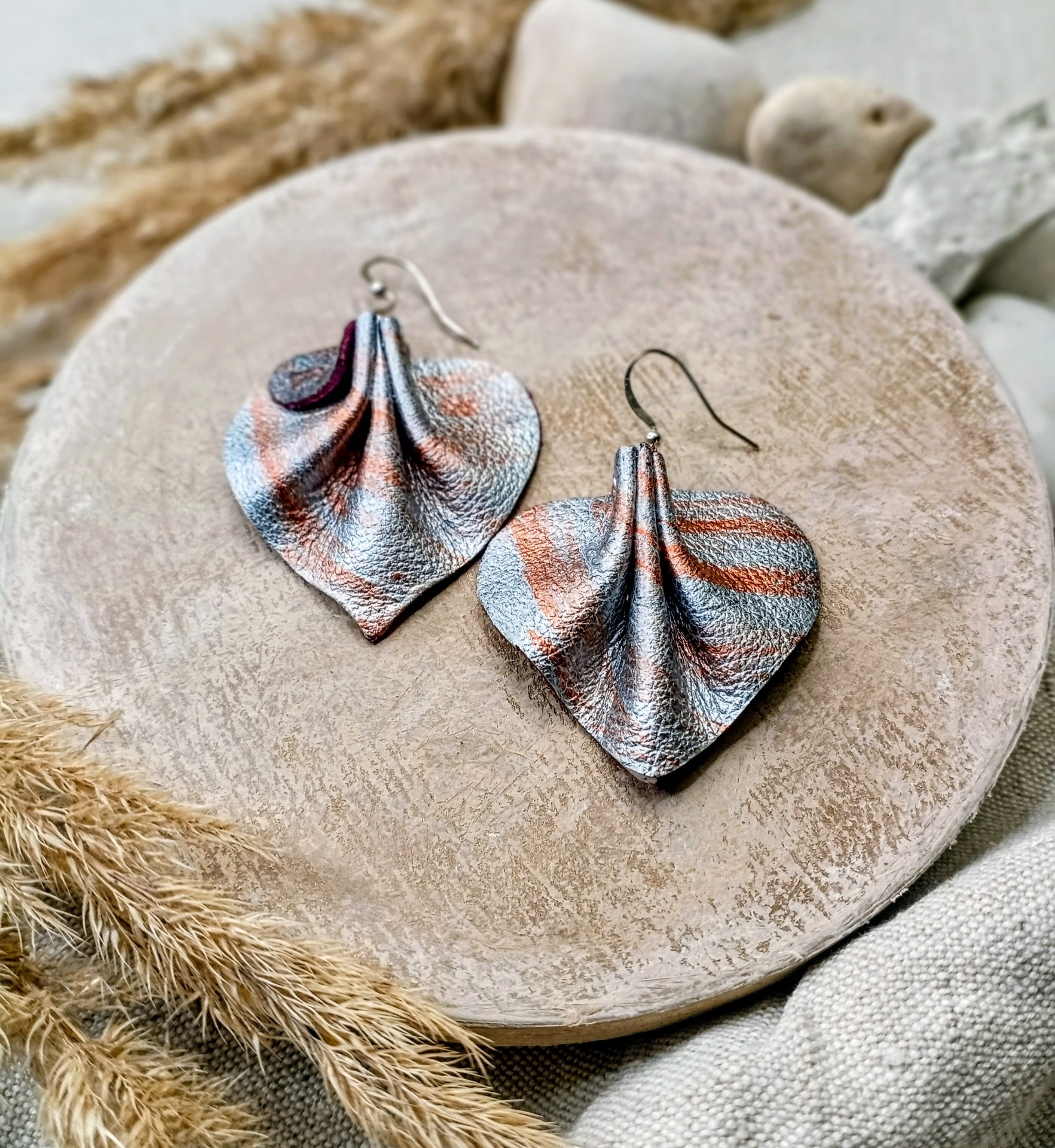 Lumme korvakoru aitoa nahkaa! Pituus koukun kanssa 5.5cm. Hopea/pronssi hohde! Koukkuosa kirurginterästä.