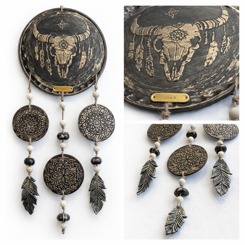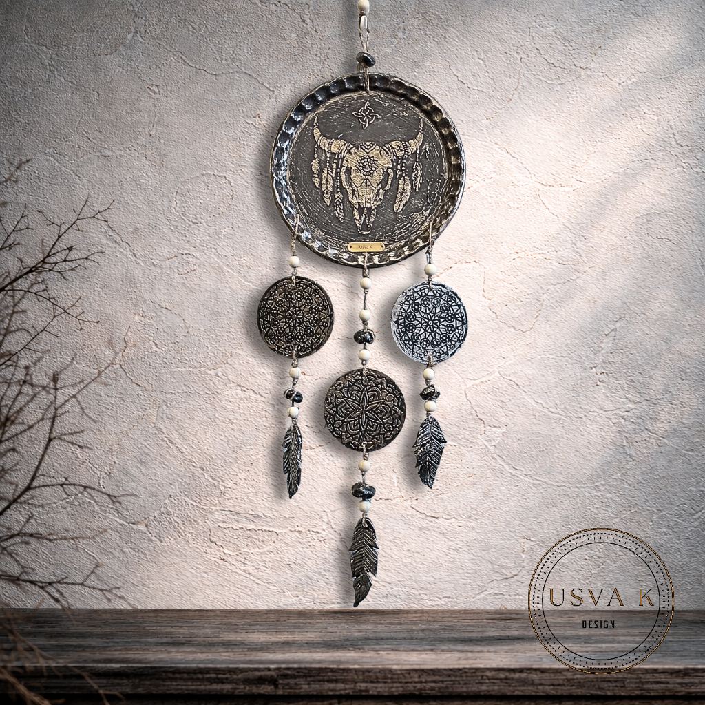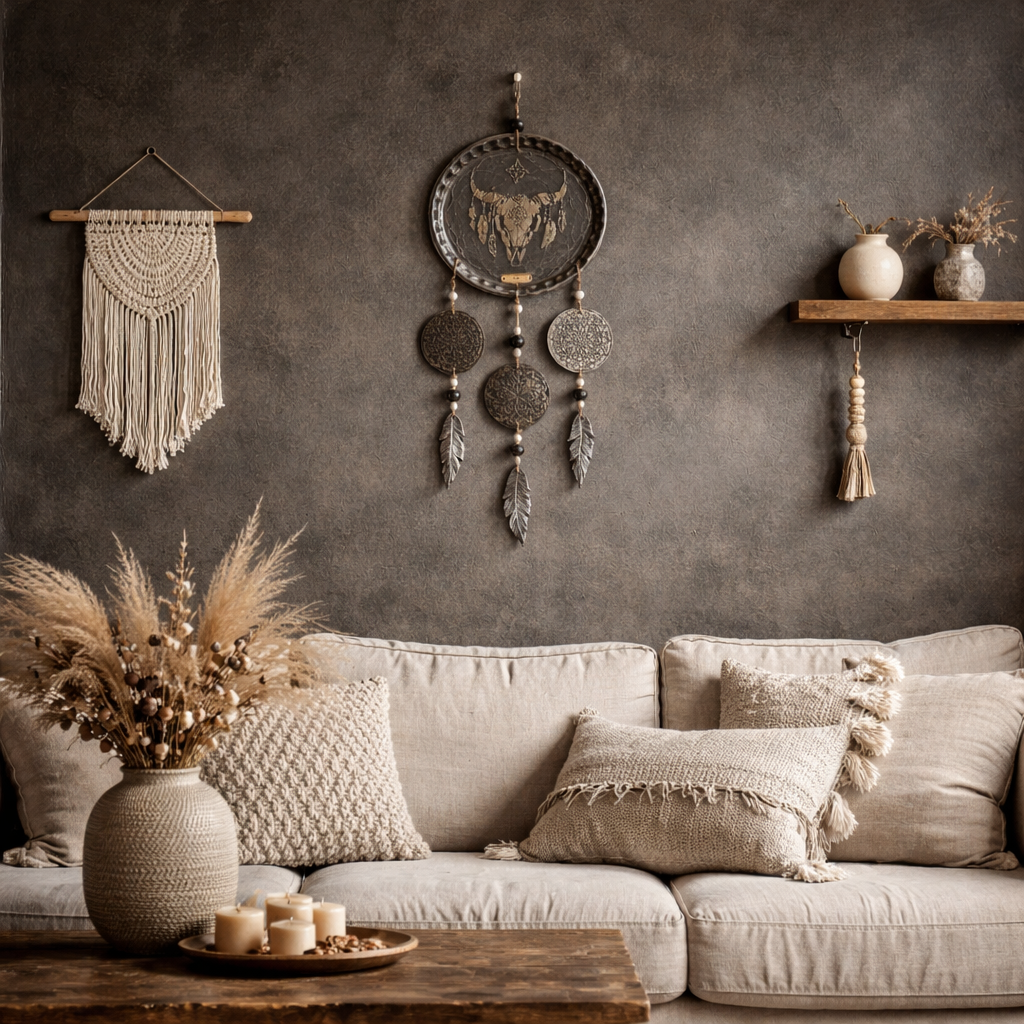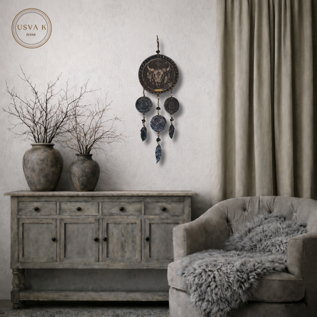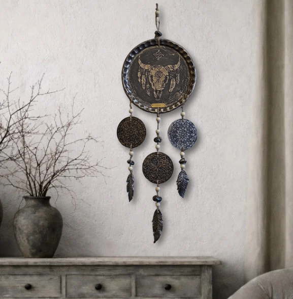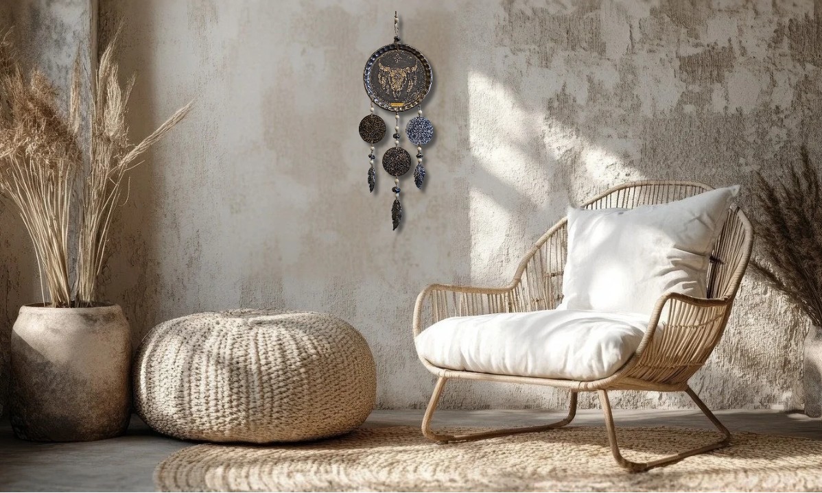 Boho-henkinen seinäkoriste tuo kotiin rauhallisen ja luonnonläheisen tunnelman. Käsintehty design yhdistää rustiikkisen sävyn, yksityiskohtaiset kuviot ja kevyesti liikkuvat elementit, jotka luovat harmonisen kokonaisuuden. Koriste sopii täydellisesti skandinaaviseen, nordic boho ja moderniin sisustukseen – olohuoneeseen, makuuhuoneeseen tai tunnelmalliseksi katseenvangitsijaksi seinälle.