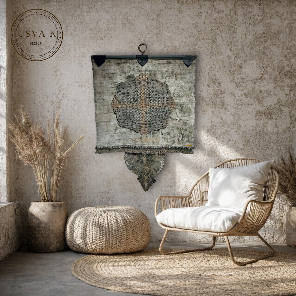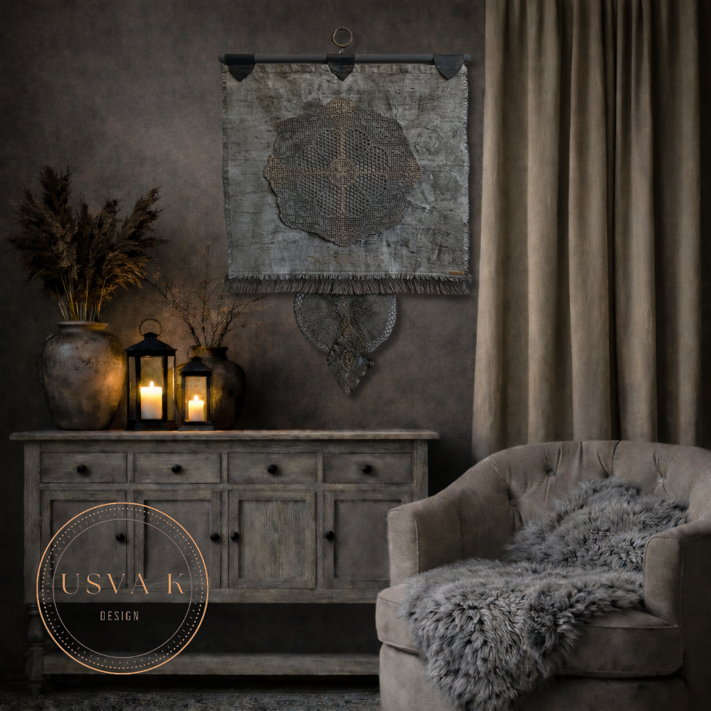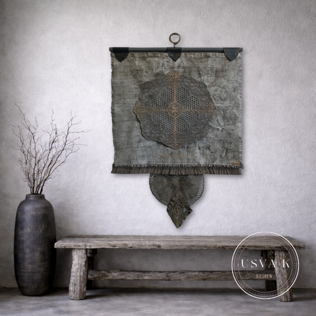 Boheemi seinävaate on käsityöhenkinen ja ajattoman kaunis sisustuselementti, joka tuo tilaan rauhallista luonnonläheistä tunnelmaa. Pellavan sävyinen tekstiili, herkkä pitsimäinen kuvio ja kevyesti rustiikkinen viimeistely luovat harmonisen kokonaisuuden, joka sopii boho-, nordic- ja skandinaaviseen sisustukseen. Seinälle ripustettava design toimii katseenvangitsijana olohuoneessa, makuuhuoneessa tai eteisessäkin.