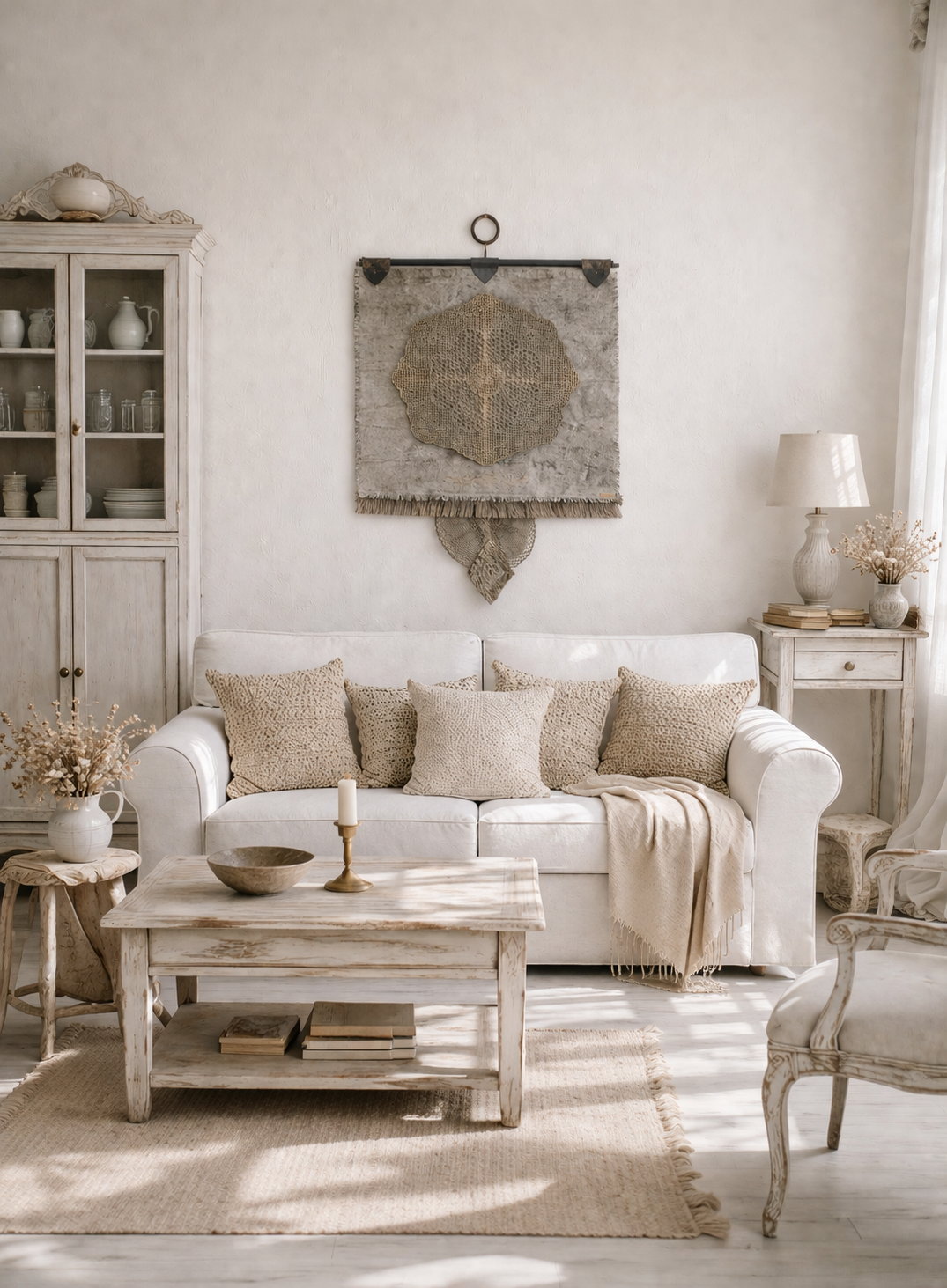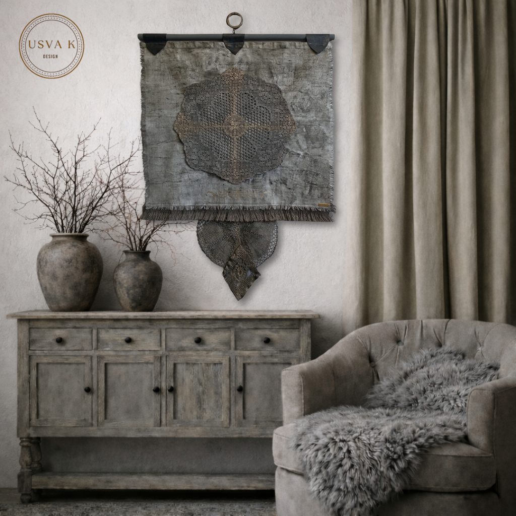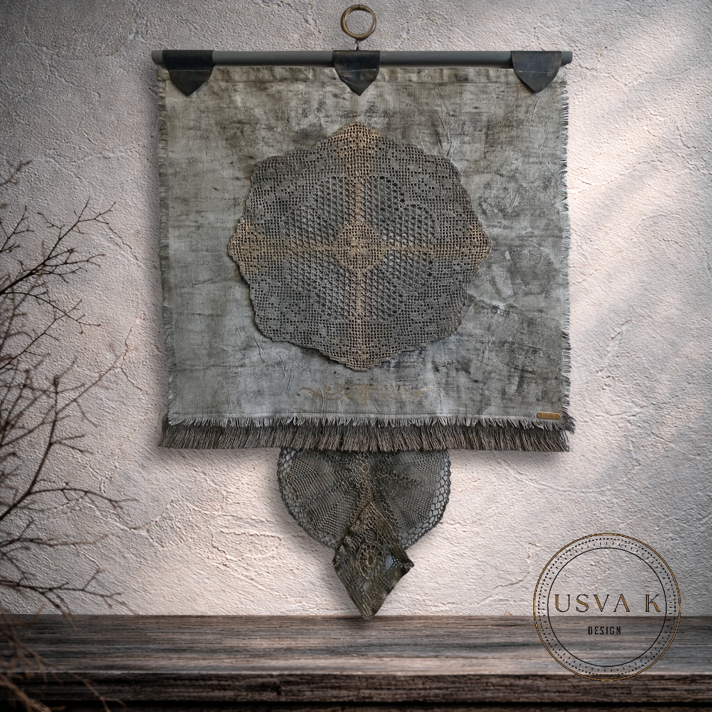 Boheemi seinävaate on käsityöhenkinen ja ajattoman kaunis sisustuselementti, joka tuo tilaan rauhallista luonnonläheistä tunnelmaa. Pellavan sävyinen tekstiili, herkkä pitsimäinen kuvio ja kevyesti rustiikkinen viimeistely luovat harmonisen kokonaisuuden, joka sopii boho-, nordic- ja skandinaaviseen sisustukseen. Seinälle ripustettava design toimii katseenvangitsijana olohuoneessa, makuuhuoneessa tai eteisessäkin.