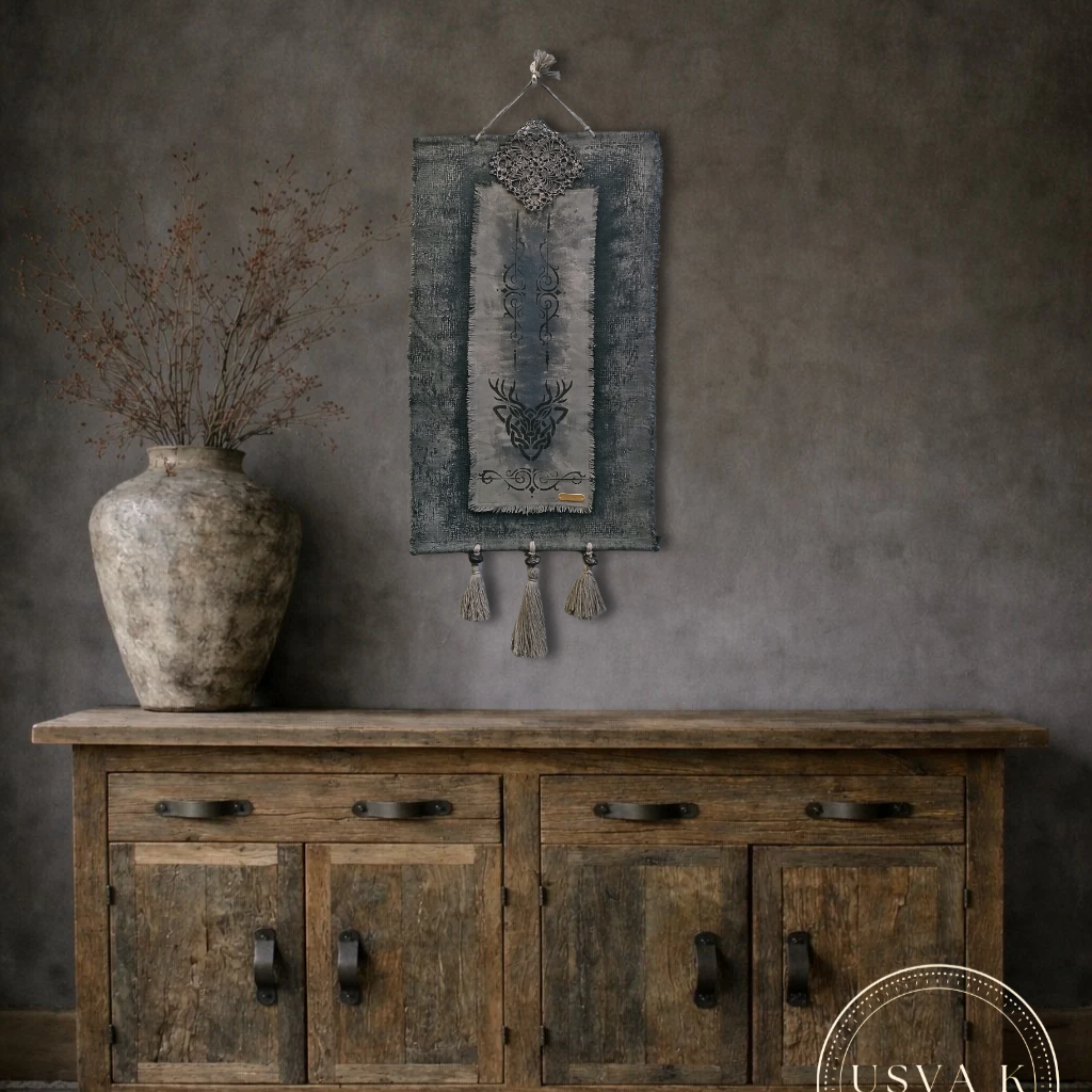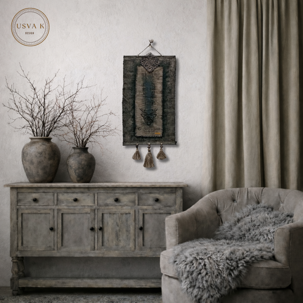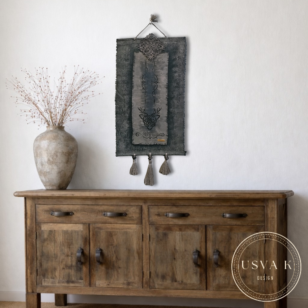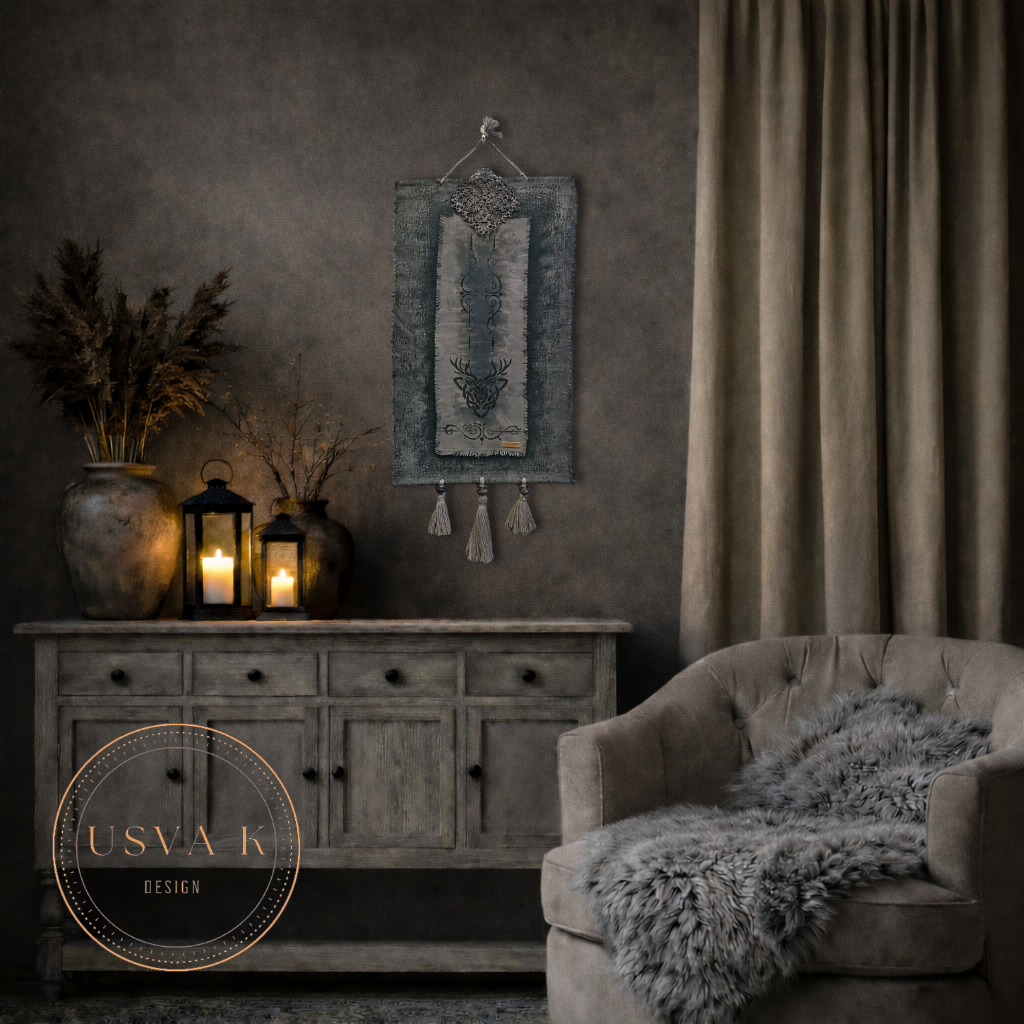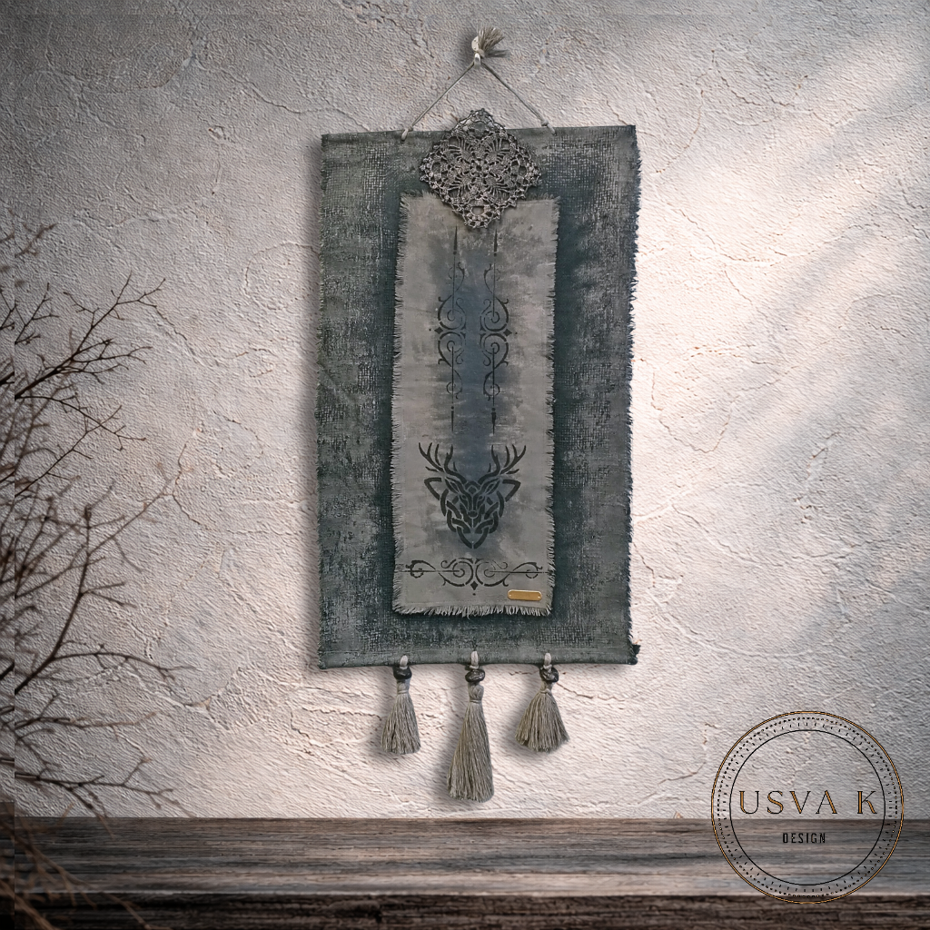 Luonnonläheinen boho-henkinen seinävaate, jossa rustiikkinen tekstuuri yhdistyy pehmeään sävymaailmaan. Kerroksellinen kangas, peura kuviointi sekä käsin viimeistellyt hapsut luovat rauhallisen ja harmonisen tunnelman kotiin. Sopii kauniisti skandinaaviseen, boho- ja luonnonläheiseen sisustukseen.