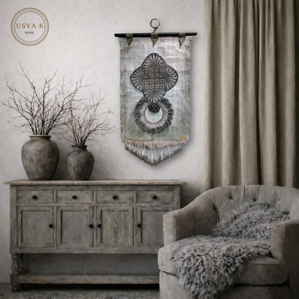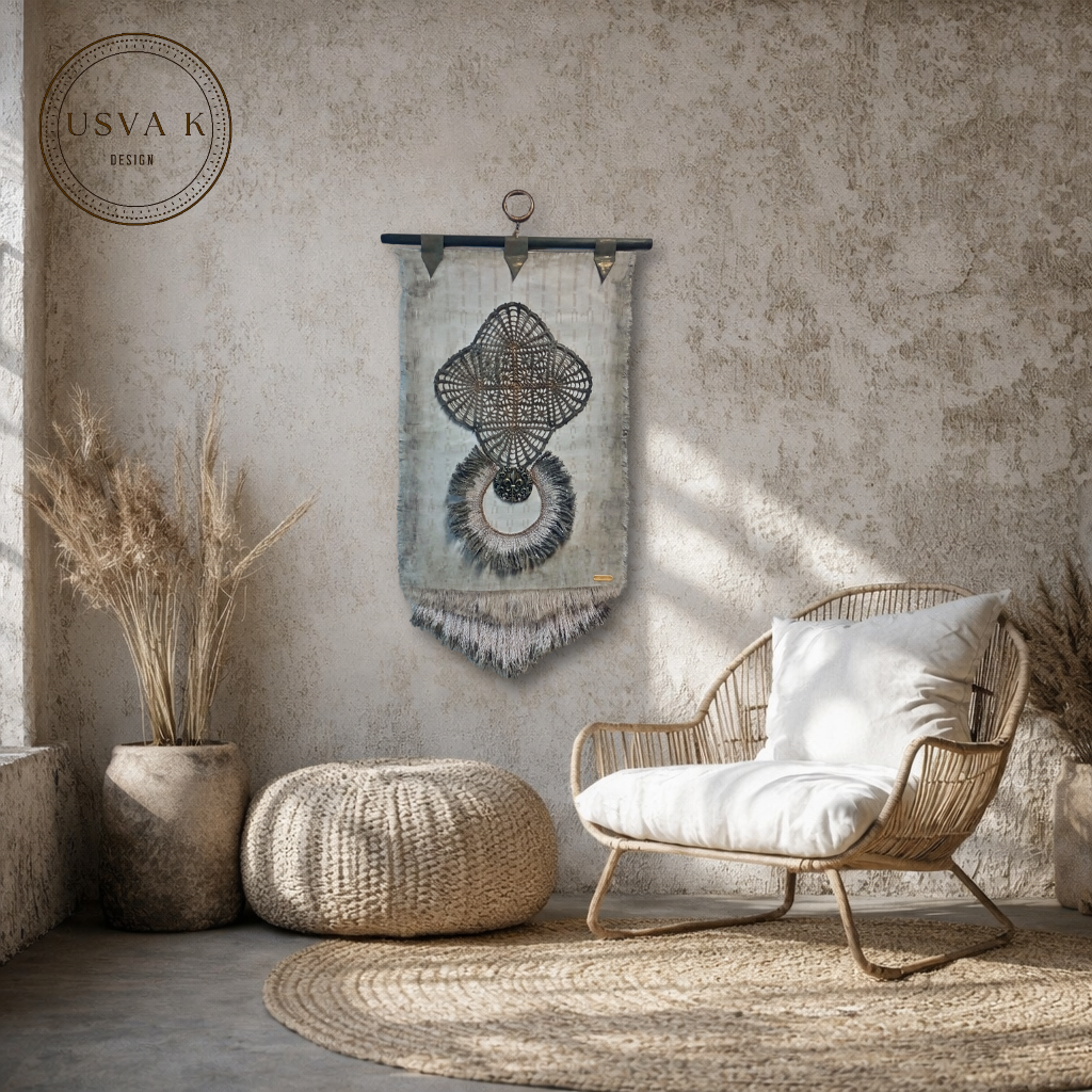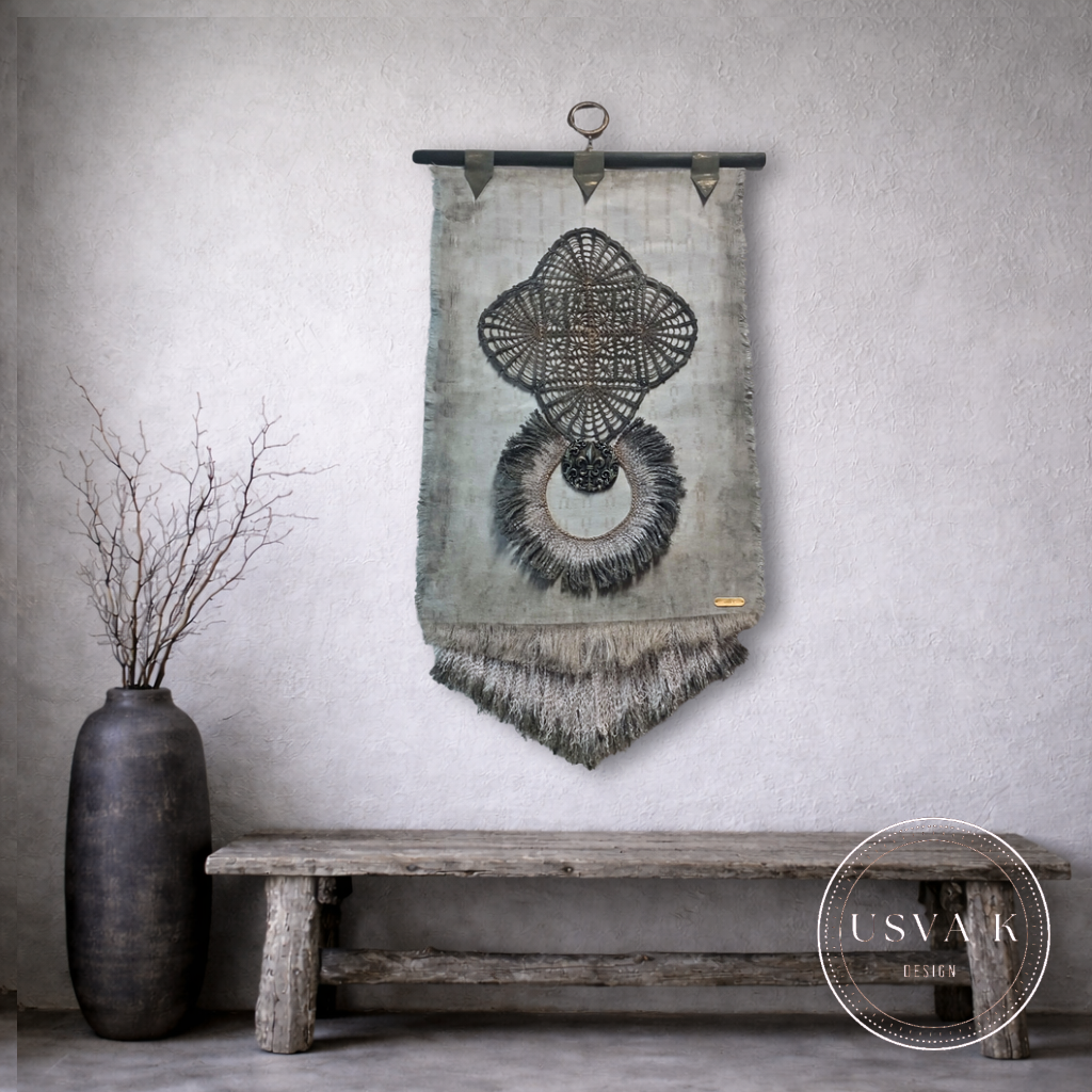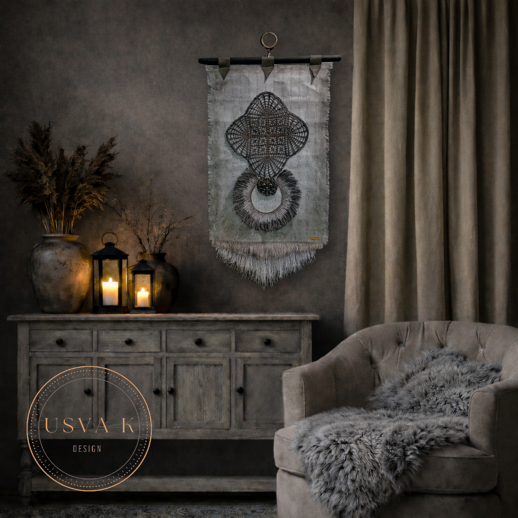 Harmoninen boheemi seinävaate, jossa yhdistyvät pehmeä luonnonsävyinen tekstiilipohja ja näyttävä käsityöhenkinen kuvio. Herkkä pitsimäinen muoto ja rustiikkinen viimeistely luovat tilaan rauhallisen ja ajattoman tunnelman. Sopii skandinaaviseen, boho- ja luonnonläheiseen sisustukseen tuomaan pehmeyttä ja persoonallisuutta.
